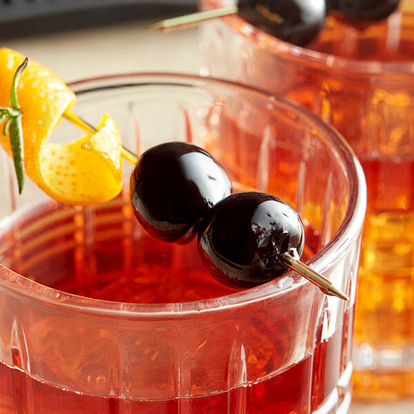 Use these cherries to add the finishing touch to signature cocktails by swirling it in a Manhattan or garnishing an Old Fashioned on a skewer. You can also use them to garnish desserts like classic chocolate ice cream sundaes with whipped cream or cherry vanilla cupcakes. You can even use these cherries to make a signature dessert by dipping them in chocolate and sprinkling them with chopped nuts! Once you have used all the cherries, the sour, fruity syrup is an amazing addition to cherry flavored cocktails and mocktails, with no preparation necessary. These Luxardo maraschino cherries are sure to be a hit at your bar, restaurant, lounge, or ice cream parlor.